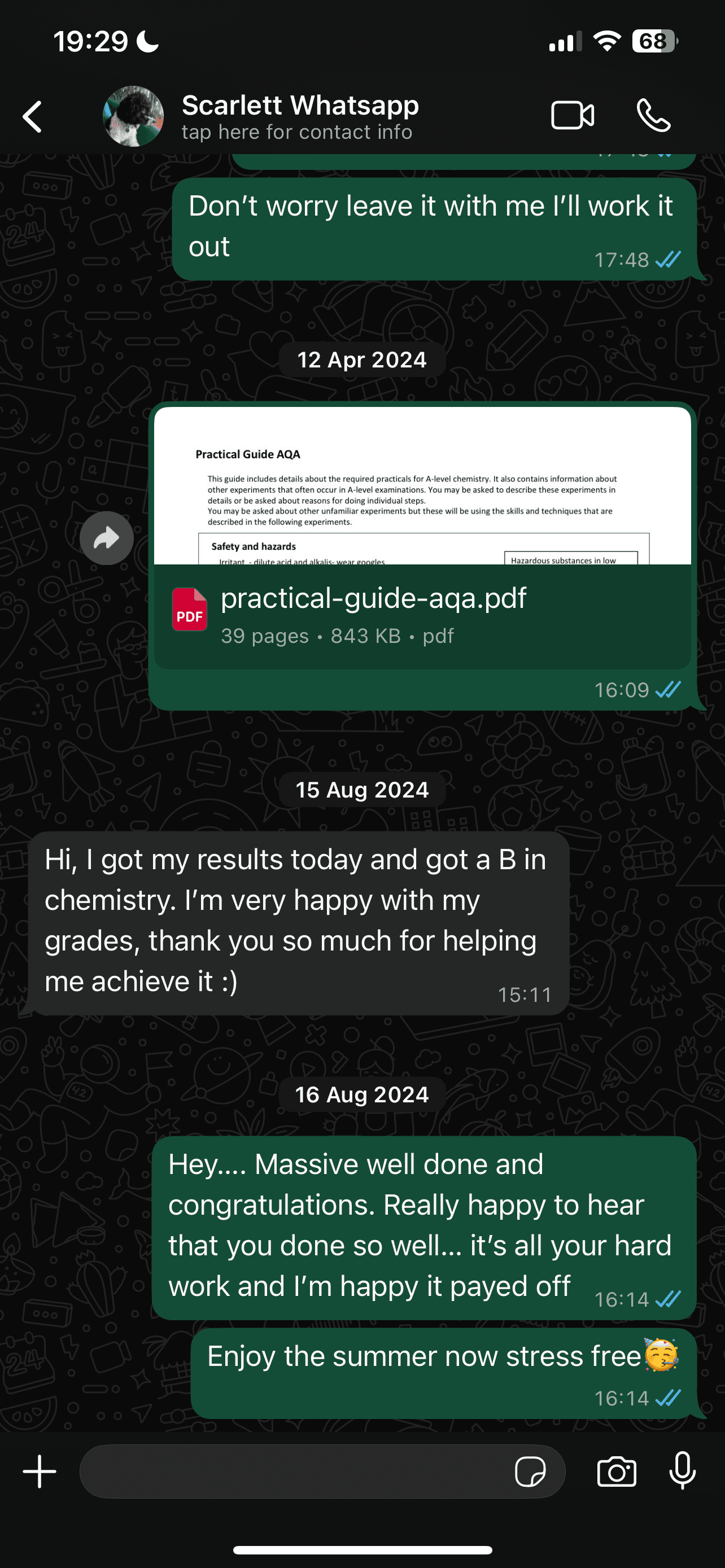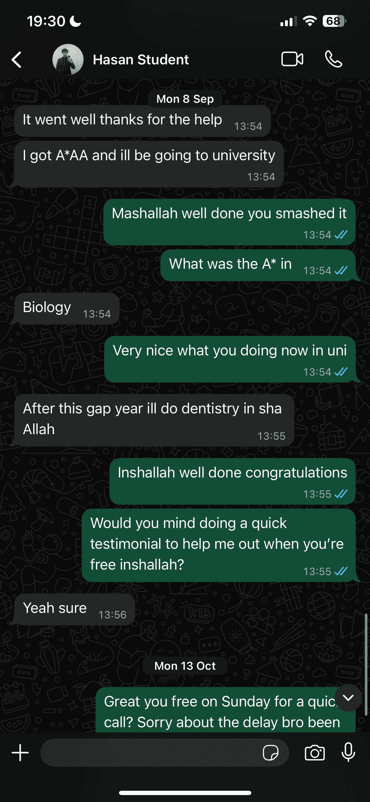 i cannot believe i went from a D to B. Mohammad understood everything that i was stuggling with and helped me achieve my goal which was getting into a top uni